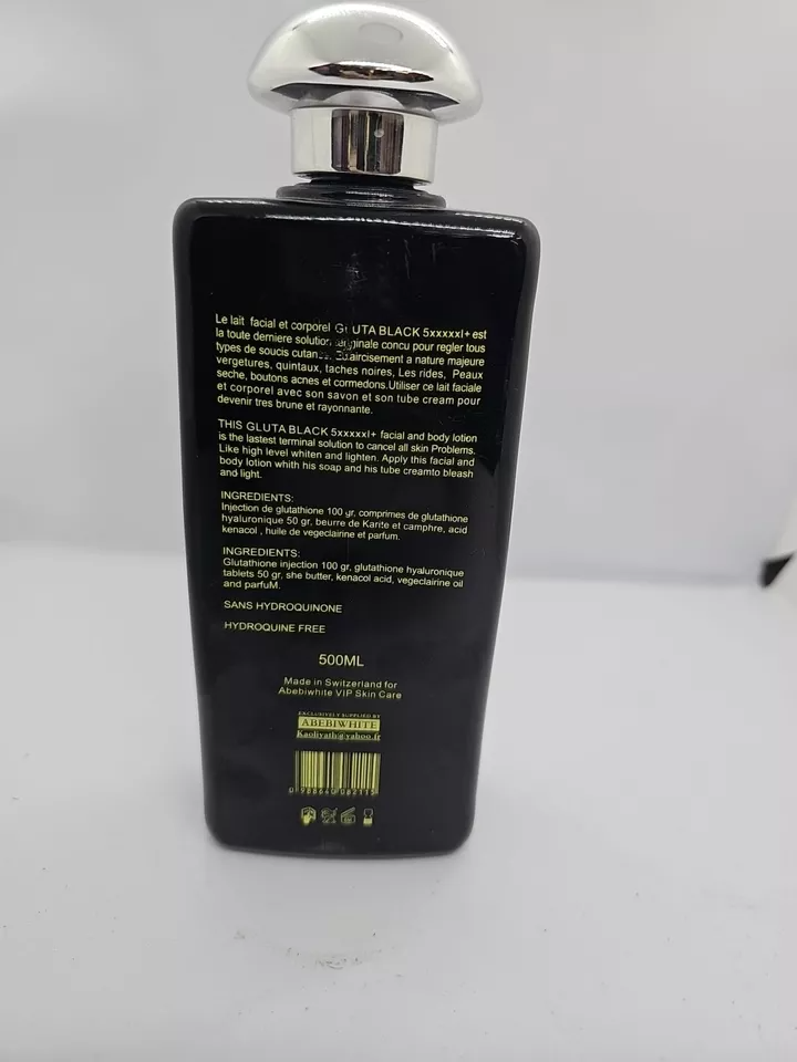 Achieve your desired skin tone with Abebi White Guta Black 5xxxxxl+ Lotion. This all-natural product guarantees 100% satisfaction, helping you achieve a brighter and healthier complexion. Say goodbye to dull and uneven skin and hello to a flawless and confident you.