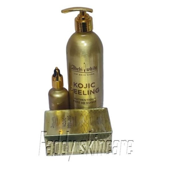 Unveil the ultimate secret to luminous, silky-smooth skin with Abebi White Kojic Peeling Body Lotion and Soap. Designed to pamper and rejuvenate, this luxurious lotion combines the power of Kojic Acid with a proprietary blend of nourishing ingredients, bringing you a transformative skincare experience that exudes radiance. Our innovative formula harnesses the potent skin-brightening prowess of Kojic Acid, a natural ingredient renowned for its ability to diminish dark spots, hyperpigmentation, and uneven skin tone. Achieve skin that's not only beautiful but brilliantly clear. Abebi White Kojic Peeling Body Lotion and Soap boasts gentle exfoliating properties that promote skin renewal. This ensures that dull, tired skin is replaced with a youthful, revitalized glow, allowing you to look and feel your best. Bid farewell to rough patches and welcome the touchable softness of your skin. Our body lotion and Soap is designed to refine skin texture, creating a canvas that feels as flawless as it looks. Elevate your self-care ritual with Abebi White Kojic Peeling Body Lotion and witness the transformation of your skin. Revel in the joy of a luminous, velvety-smooth complexion that radiates confidence. Treat yourself to the ultimate skincare indulgence. Order now and let your skin's true beauty shine through.