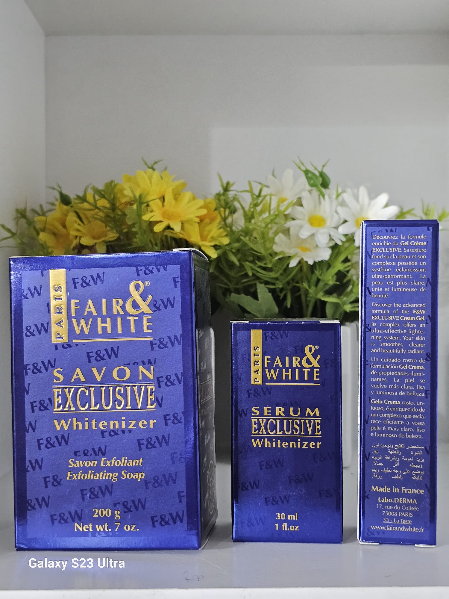 Fair & white exfoliating soap 200g with serum30ml & cream gel 30ml