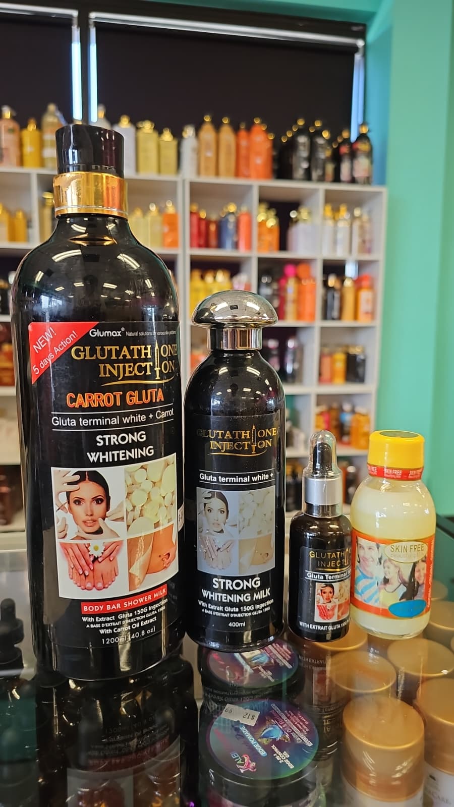 Glutathione injection carrot gluta shower milk, body milk, serum with skin free body milk