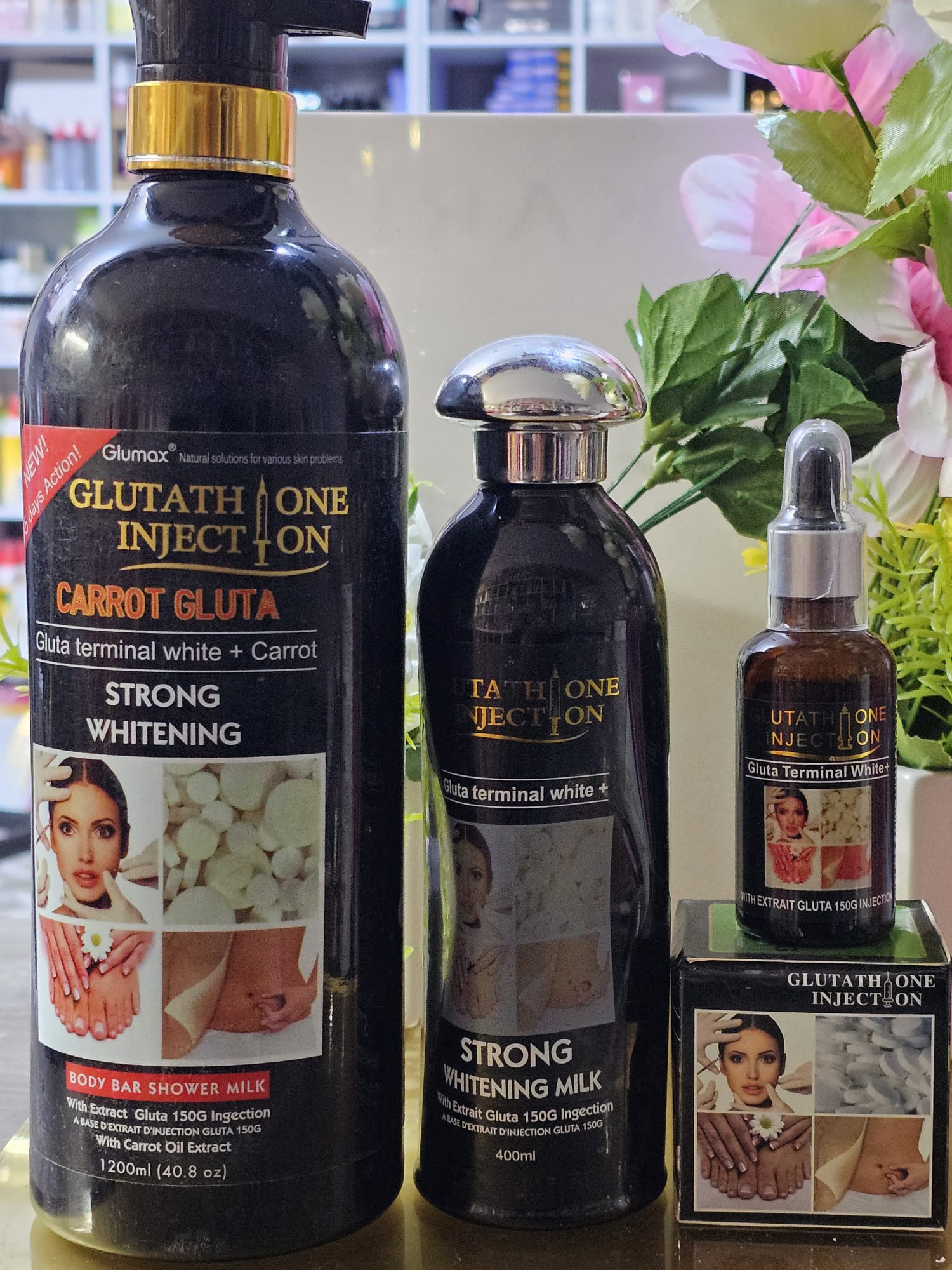 glutathione injection carrot gluta whitening shower milk, lotion, serum & face cream