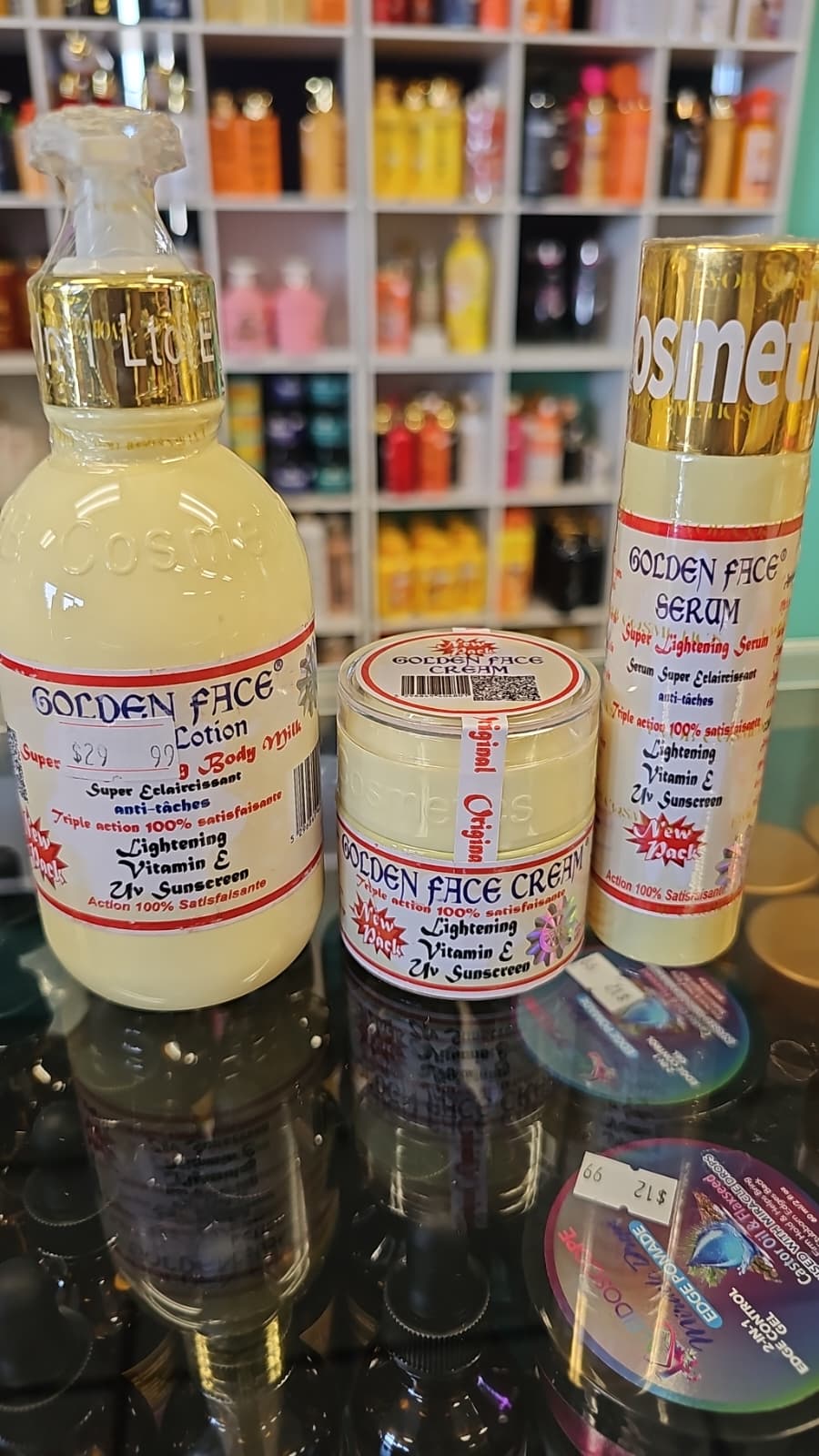 golden face lightening body milk with face cream & serum