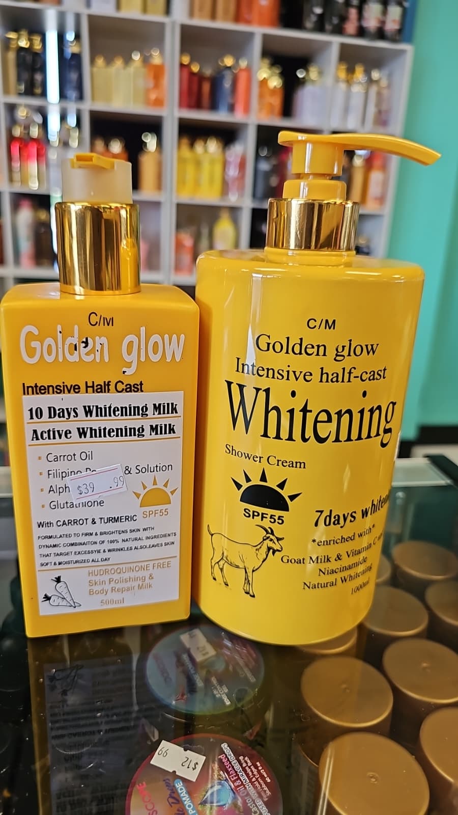 Golden glow active whitening milk 500ml with whitening shower cream 1000ml