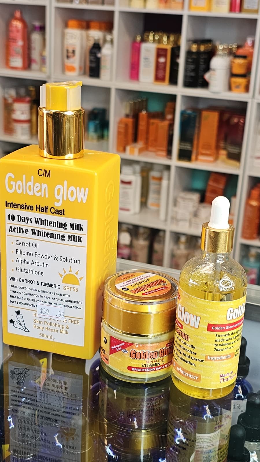 Golden glow active whitening milk with face cream & serum