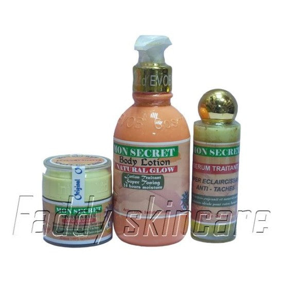 Elevate your daily skincare ritual with Mon Secret Body Set, a luxurious elixir designed to pamper your skin like never before. Crafted with care and precision, this indulgent formula takes self-care to a whole new level, enveloping your body in a veil of nourishment, hydration, and irresistible fragrance. Mon Secret Body Lotion is a moisture-packed dream for your skin. Enriched with a blend of deeply hydrating ingredients, it quenches your skin's thirst, leaving it soft, smooth, and velvety to the touch. Experience a lotion that effortlessly glides on your skin, absorbing quickly without any greasy residue. Say goodbye to that sticky feeling, and hello to pure comfort. Indulge your senses in an enchanting aroma that lingers delicately on your skin all day long. Mon Secret's signature fragrance is a well-kept secret that will have you feeling confident and alluring.