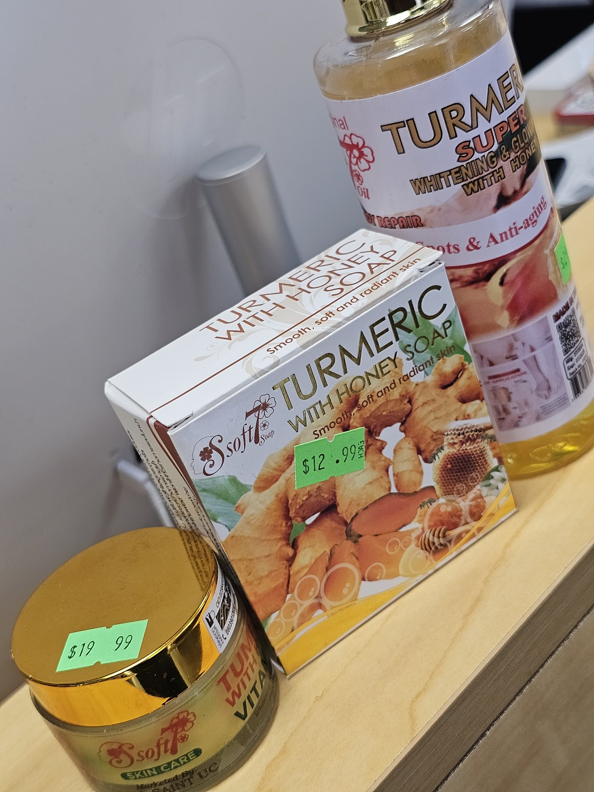 Soft 7 turmeric with honey soap, face cream, whitening & glow oil.
