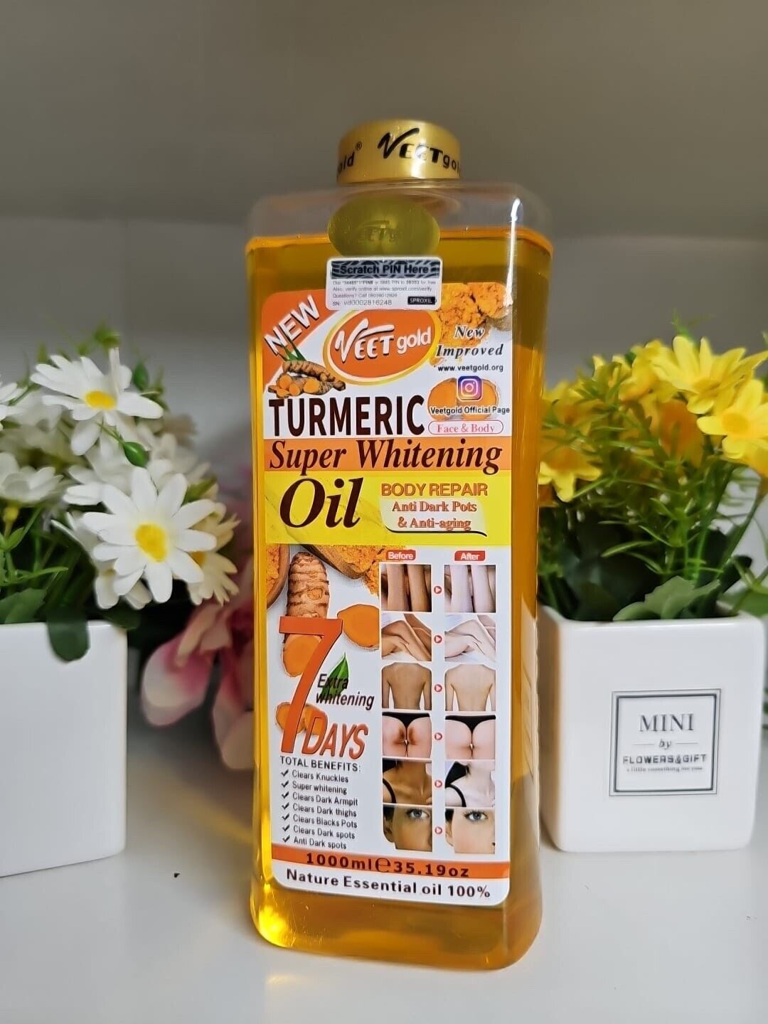 Get the radiant, even skin tone you've always wanted with Veet Gold Retinol Intensive Whitening Body Corrector Oil. This 1000ml bottle is packed with retinol to effectively lighten and correct dark spots and discoloration. Achieve a flawless complexion with this powerful, nourishing oil.